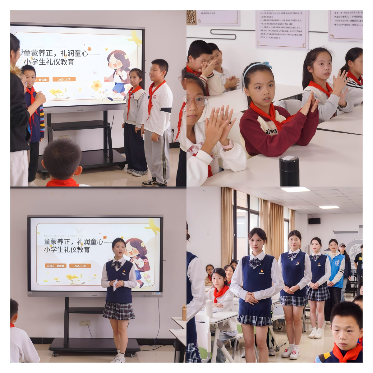 活動伊始,志愿者們身著統(tǒng)一志愿服裝,以挺拔標準的站姿整齊列隊,用嚴謹端莊的儀態(tài)向現(xiàn)場師生直觀展現(xiàn)禮儀素養(yǎng)的魅力。志愿者們借助精心打磨的PPT課件,將禮儀素養(yǎng)的核心內(nèi)涵與校園問候、課堂坐姿、交往溝通等日常場景緊密結(jié)合,通過趣味動畫短片、經(jīng)典禮儀小故事等孩子們喜聞樂見的形式,深入淺出地解析禮儀的重要意義,讓抽象的禮儀知識變得鮮活可感。