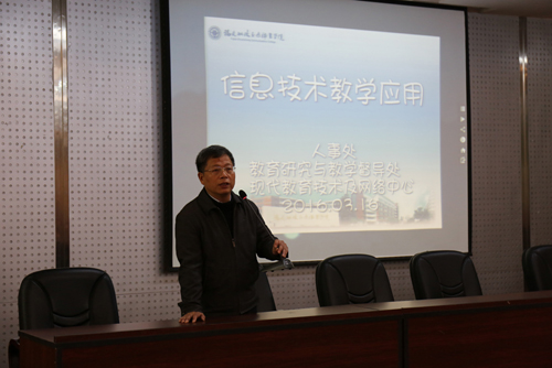 陳貞健副院長(zhǎng)出席并講話,他在講話中指出:當(dāng)前國(guó)家大力推進(jìn)信息化教學(xué)手段在教育教學(xué)改革中的應(yīng)用,學(xué)院也給予高度重視,希望全體教師能夠從思想上重視信息技術(shù)教學(xué)手段的改革,結(jié)合自身課程實(shí)際,大力開展相應(yīng)的研究和改革工作,學(xué)院將陸續(xù)制定相應(yīng)的配套制度,加強(qiáng)在職稱評(píng)定、效能考核等方面的建設(shè),營(yíng)造信息化教學(xué)改革的氛圍。