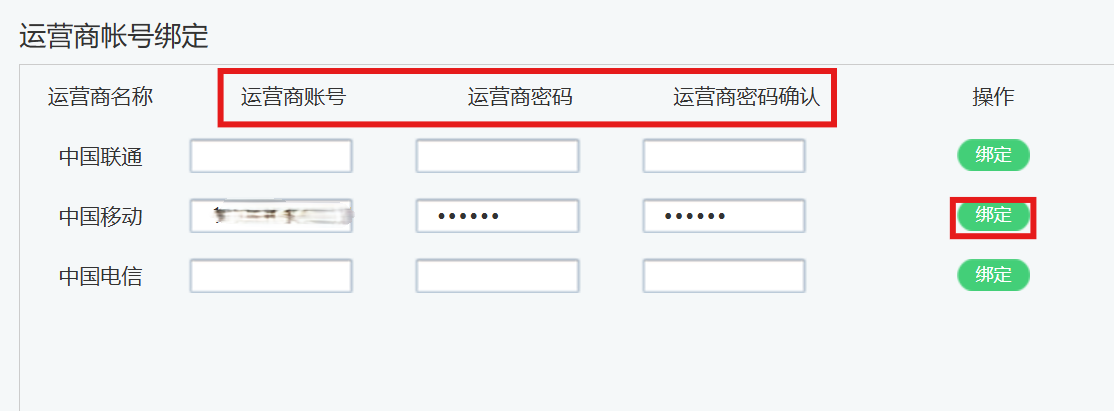 在自己辦卡的對(duì)應(yīng)運(yùn)營(yíng)商那邊填寫運(yùn)營(yíng)商賬號(hào)和兩次運(yùn)營(yíng)商密碼
