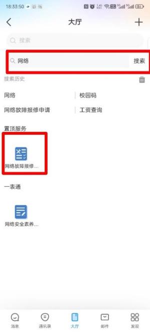 通過置頂服務(wù)或者搜索網(wǎng)絡(luò)找到網(wǎng)絡(luò)故障報(bào)修按鈕點(diǎn)擊