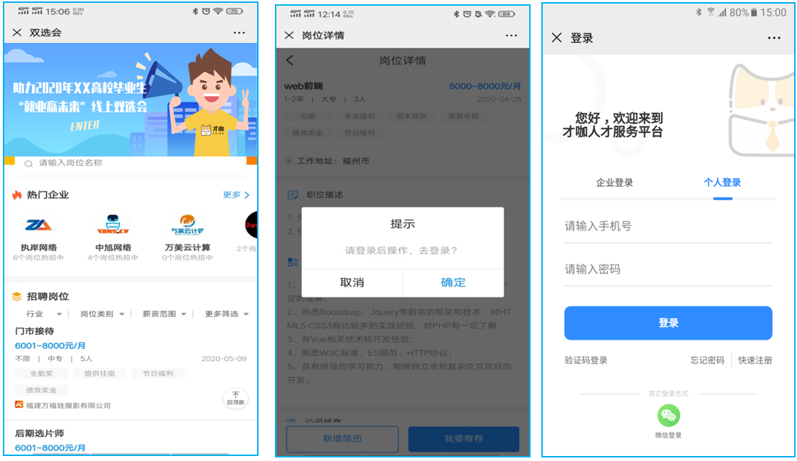 通過(guò)審核企業(yè)在“才咖”人才服務(wù)平臺(tái)發(fā)布崗位信息,即可參與招聘會(huì),同時(shí)可報(bào)名參加企業(yè)空中宣講會(huì);
