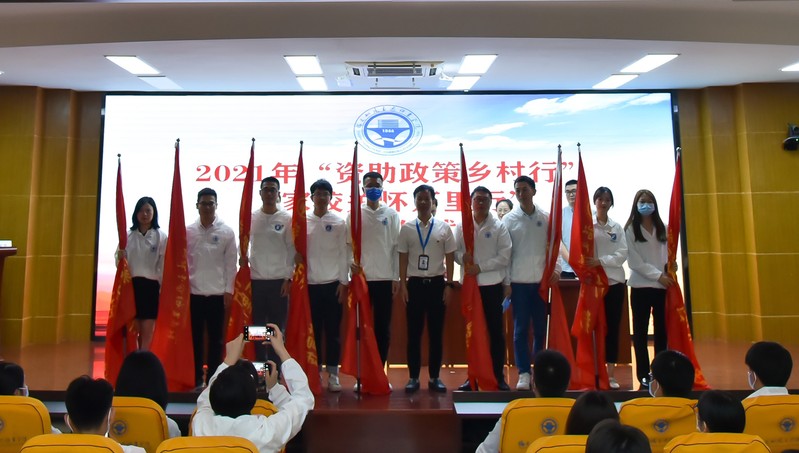 活動(dòng)儀式上,學(xué)生工作處王心金處長為“家校關(guān)懷萬里行”9個(gè)小分隊(duì)進(jìn)行授旗。