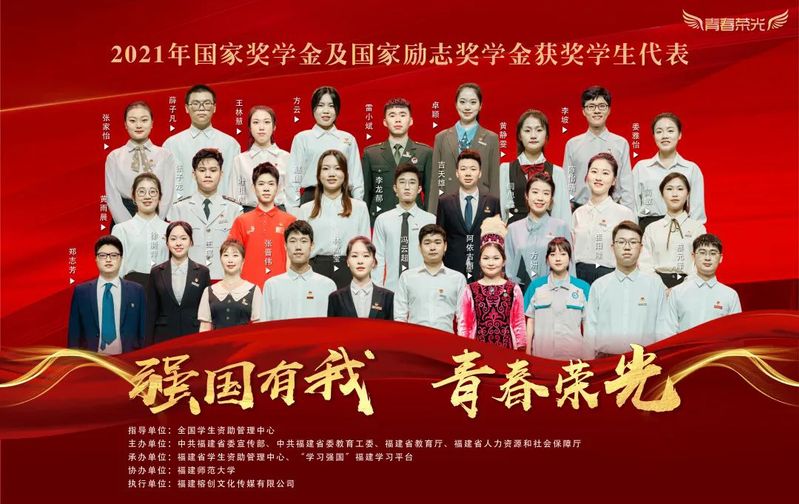 5月31日20:00,“強國有我,青春榮光”第三屆國家獎學金福建省頒獎大會在線上播出。