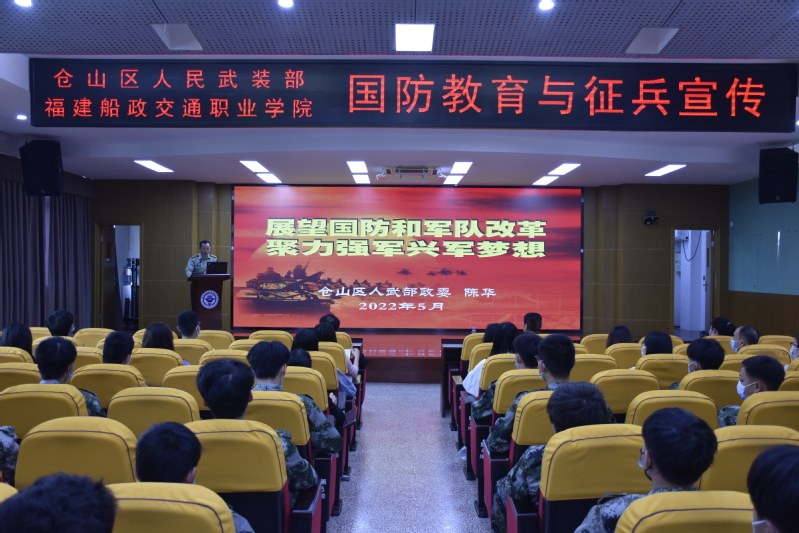 為切實(shí)加強(qiáng)我院大學(xué)生國(guó)防教育、做好征兵入伍宣傳動(dòng)員工作,激發(fā)學(xué)子的家國(guó)情懷,5月12日上午,在1號(hào)樓學(xué)術(shù)報(bào)告廳舉辦了國(guó)防教育主題講座暨征兵宣傳進(jìn)校園活動(dòng)。倉(cāng)山區(qū)人民武裝部政委陳華應(yīng)邀出席活動(dòng)并作專題講座,學(xué)生工作部部長(zhǎng)王心金及各二級(jí)學(xué)院輔導(dǎo)員代表和有意參軍的學(xué)生代表200余人參加,學(xué)生工作部副部長(zhǎng)鄧本超主持會(huì)議。