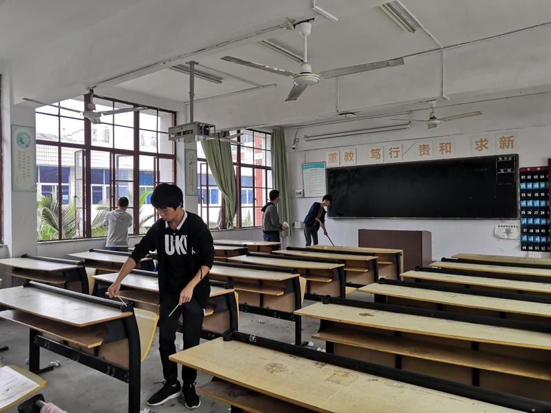 與此同時,開展對教室和機房的大掃除,清潔人員由大一、大二、大三的志愿者組成。