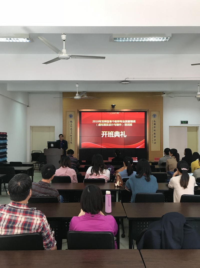 2018年12月3日,由福建船政交通職業(yè)學院承辦的2018年“雙師型”骨干教師專業(yè)技能培訓——虛擬現(xiàn)實(VR)設計與制作在2號樓2-1舉行開班儀式。來至全省二十多所高職院校的20多位老師出席了本次開班儀式。我院黨委副書記韓孟強出席開班儀式并至歡迎詞,并對此次培訓提出希望,以VR專業(yè)核心能力課程為主線,通過培訓講師的理實一體化的教學實訓,提升受訓教師的專業(yè)水平和教學設計水平,并預祝此次培訓圓滿結束。