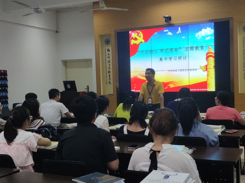 10月9日下午,信息工程系黨總支組織召開 “不忘初心、牢記使命” 主題教育集中學(xué)習(xí)研討活動,集體學(xué)習(xí)了《習(xí)近平新時代中國特色社會主義思想學(xué)習(xí)綱要》節(jié)選,黨總支孫基書記圍繞學(xué)習(xí)貫徹落實習(xí)近平新時代中國特色社會主義思想、習(xí)近平總書記關(guān)于“不忘初心、牢記使命”重要論述,以及習(xí)近平總書記在慶祝中華人民共和國成立70周年大會上的重要講話精神,帶頭進行了發(fā)言研討。
