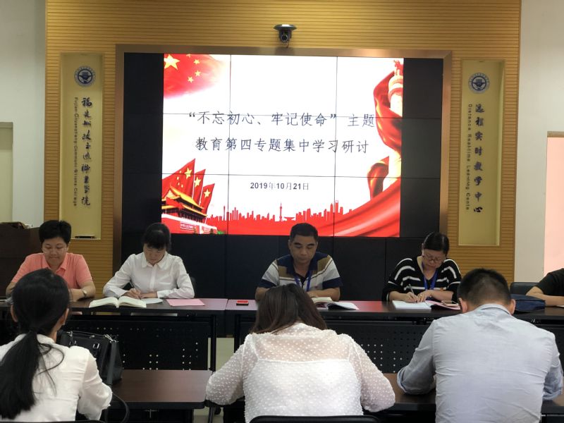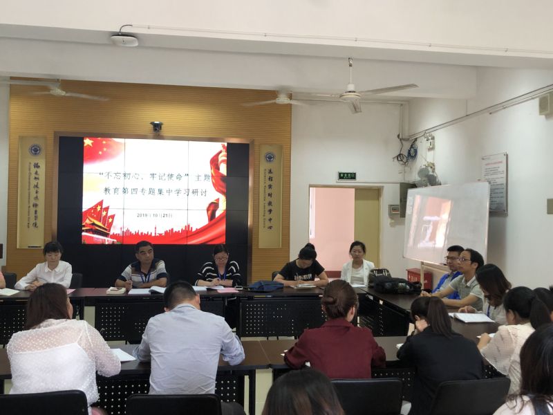 10月21日,我系開展“不忘初心、牢記使命”主題教育第四專題集中學習研討,圍繞“牢記為民宗旨”這一主題進行研討交流,黃金鳳作重點發(fā)言,黨總支書記孫基主持會議。