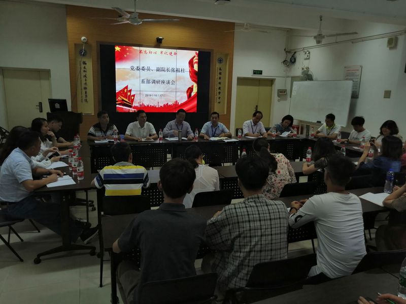 為了解我系開展“不忘初心、牢記使命”主題教育情況,指導(dǎo)主題教育走向深入,為下一階段工作夯實(shí)基礎(chǔ),10月17日下午,學(xué)院黨委委員、副院長張祖柱率后勤、安辦、基建職能部門到我系開展主題教育工作調(diào)研,信息工程系教職工代表、學(xué)生代表參加了座談會(huì)。