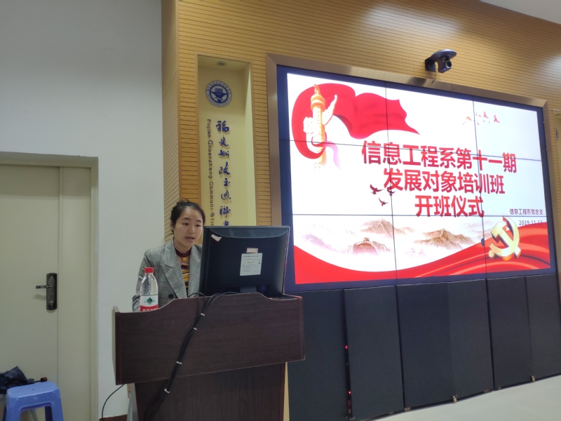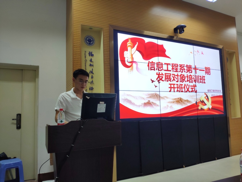為近一步提高我系發(fā)展對象對黨的性質(zhì)、宗旨以及習(xí)近平新時代中國特色社會主義思想的認識,切實增強發(fā)展對象的責(zé)任意識和先鋒意識。2019年11月13日,我系于2號樓2-1教室舉辦第十一期發(fā)展對象培訓(xùn)班的開班儀式。信息工程系黨總支書記孫基書記,輔導(dǎo)員范碧華老師、姚宏軍老師、白峰橋老師以及陳妍君老師出席了本次開班儀式。開班儀式由范碧華老師主持召開。