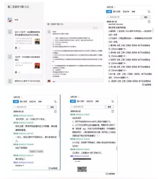 支部大部分黨員老師都兼任學(xué)生班主任工作,他們堅持教書育人,以德為先,除了完成日常的教學(xué)工作,還與輔導(dǎo)員們一起,共同活躍在關(guān)心關(guān)愛學(xué)生的第一線。每日通過電話、網(wǎng)絡(luò)通訊工具(微信、QQ)對學(xué)生進(jìn)行疫情排查摸底,摸排所帶班級的學(xué)生狀況、關(guān)注學(xué)生的疫情數(shù)據(jù)、問候湖北籍學(xué)生、轉(zhuǎn)發(fā)官方最新的防控信息……