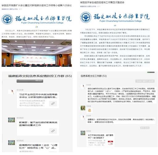 全體黨員教師認(rèn)真學(xué)習(xí)習(xí)近平關(guān)于新冠肺炎疫情防控工作系列重要講話精神、上級和學(xué)院關(guān)于防控工作相關(guān)文件,主動通過QQ群、微信公眾號等新媒體平臺宣傳并學(xué)習(xí)學(xué)校防控工作要求、防疫知識、防疫進(jìn)展情況;深入開展“疫情防控”主題黨日活動,弘揚(yáng)正能量,不僅做到自己亮身份、樹形象,將責(zé)任內(nèi)化于心、外化于行,更是注重引導(dǎo)身邊師生群眾仔細(xì)辨別核實各類信息,做到不信謠不傳謠,以實際行動帶動師生共同抗疫。