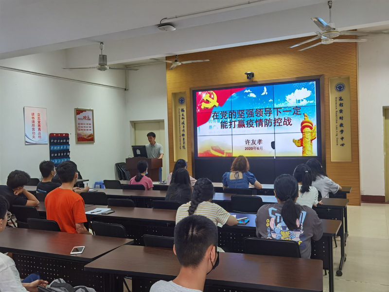 為了深入學(xué)習(xí)貫徹習(xí)近平新時代中國特色社會主義思想特別是習(xí)近平總書記最新重要講話精神,深入貫徹落實黨的十九大和十九屆二中、三中、四中全會精神,強(qiáng)化制度自信教育,用好中國抗疫這本深刻、鮮活、生動的思政課教科書,教育引導(dǎo)學(xué)生充分認(rèn)識中國共產(chǎn)黨領(lǐng)導(dǎo)和中國特色社會主義制度的顯著優(yōu)勢,增強(qiáng)“四個意識”、堅定“四個自信”、做到“兩個維護(hù)”,傳承和弘揚(yáng)愛國主義精神,培養(yǎng)德智體美勞全面發(fā)展的社會主義建設(shè)者和接班人。2020年6月23日在2號樓2-1教室,信息工程系黨總支書記許友孝書記、信息工程系主任黃金鳳分別為2018級部份學(xué)生及預(yù)備黨員、入黨積極分子做了題為“在黨中央堅強(qiáng)領(lǐng)導(dǎo)下堅決打贏疫情防控阻擊戰(zhàn)”和“疫情猶在,防控銘記”的形勢與政策報告。