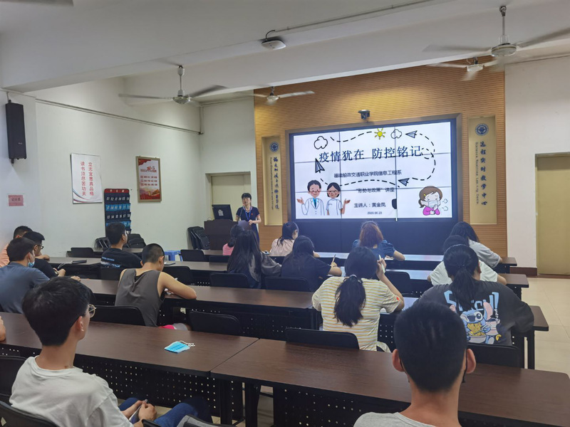 黃金鳳主任從現(xiàn)階段國內(nèi)外新冠疫情、新冠肺炎的預(yù)防及生活中如何預(yù)防新型冠狀病毒肺炎三個方面對疫情防控進(jìn)行了講解。她通過具體的數(shù)據(jù)分析了當(dāng)前國內(nèi)外疫情形勢的嚴(yán)峻性,并提醒廣大學(xué)子做好新冠肺炎的預(yù)防,做好開學(xué)前的預(yù)防工作及返校后的校內(nèi)管理工作。同時,也向?qū)W生們介紹了生活中疫情防控小知識,大大增強(qiáng)了同學(xué)們的疫情防控意識。