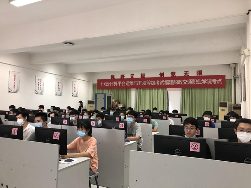 2020年7月4日星期六下午,福建船政交通職業(yè)學(xué)院信息工程系首批“1+X云計(jì)算平臺(tái)運(yùn)維與開發(fā)”證書中級(jí)考試,在北區(qū)2號(hào)樓606機(jī)房舉行,18級(jí)信息工程系計(jì)算機(jī)網(wǎng)絡(luò)技術(shù)專業(yè)共有50名學(xué)生,克服天氣炎熱、考試過(guò)程時(shí)間(14:00-18:00)超長(zhǎng)等困難完成本次考試任務(wù)。