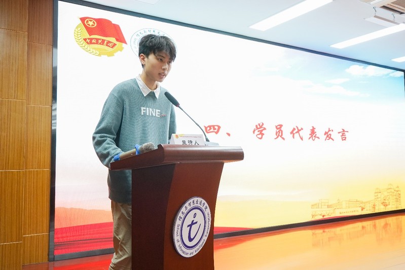 20級(jí)軟件技術(shù)4班劉棋同學(xué)代表全體學(xué)員發(fā)言并向團(tuán)組織表態(tài):嚴(yán)格遵守團(tuán)校各項(xiàng)規(guī)定,堅(jiān)定信念,主動(dòng)學(xué)習(xí),積極行動(dòng),做到胸中有目標(biāo),腳下有承諾,時(shí)刻鞭策自己,經(jīng)受住各方面的考驗(yàn),爭(zhēng)取早日加入共青團(tuán)。