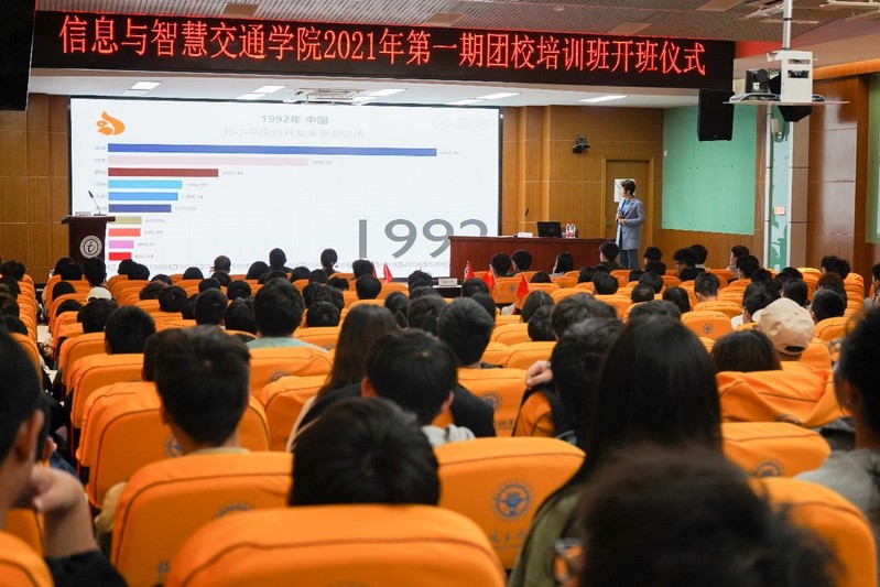 深入開(kāi)展“學(xué)黨史 強(qiáng)信念 跟黨走”學(xué)習(xí)教育,深化推進(jìn)共青團(tuán)“強(qiáng)基固本”工程,2021年4月16日18時(shí),信息與智慧交通學(xué)院于一號(hào)樓六樓學(xué)術(shù)報(bào)告廳舉辦2021第一學(xué)期團(tuán)校培訓(xùn)。學(xué)院黨總支副書(shū)記柳燕妮,學(xué)院分團(tuán)委負(fù)責(zé)人沈曉家以及學(xué)院全體輔導(dǎo)員出席了本次開(kāi)班儀式;全體團(tuán)校培訓(xùn)學(xué)員以及信息學(xué)院2019級(jí)團(tuán)學(xué)干部共同參與了本次開(kāi)班式并聆聽(tīng)了講座。本次開(kāi)班儀式由信息學(xué)院分團(tuán)委負(fù)責(zé)人沈曉家老師主持。