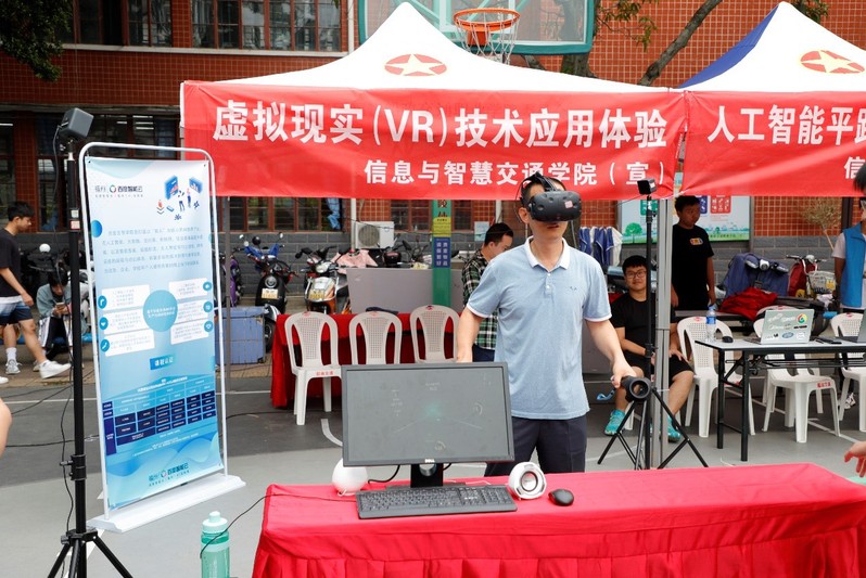 同學(xué)們在體驗(yàn)VR技術(shù)