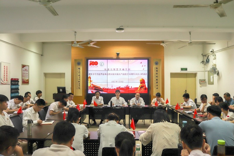 2021年7月1日,慶祝中國共產(chǎn)黨成立100周年大會在北京天安門廣場隆重舉行。中共中央總書記、國家主席、中央軍委主席習近平將發(fā)表重要講話。在這舉國歡慶的日子里,信息與智慧交通學院全體師生分別在教室和會議室集中收聽看慶祝中國共產(chǎn)黨成立100周年大會直播。