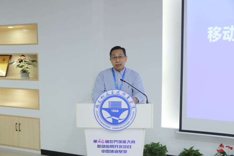 中國技術指導專家組組長蔡立勛講話中表示,感謝福建船政交通職業(yè)學院為本次考核提供高標準的集訓設施和高水平的后勤保障,并預祝本次考核高質(zhì)量開展、圓滿完成,希望福建基地培養(yǎng)更多優(yōu)秀的移動應用開發(fā)技能人才。