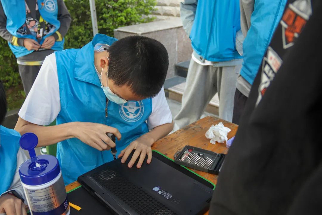 信院學(xué)子使用維護(hù)工具與所學(xué)知識(shí)為同學(xué)們的電腦進(jìn)行維修檢測(cè)