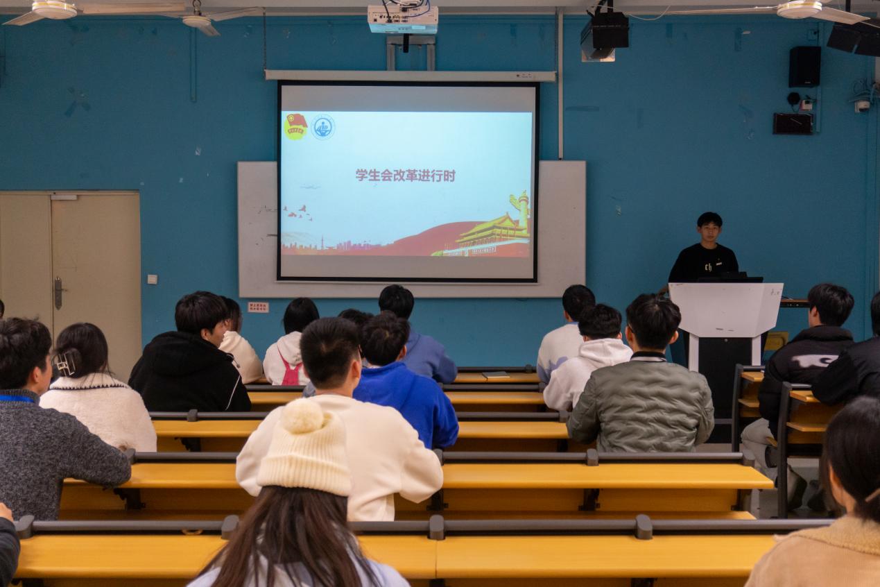 還提出學生會改革的總體要求和目標,并強調學生會全體工作人員需要引導服務同學們成長為時代新人,要注重政治引領,強化價值倡導,在思想、精神方面引領同學對黨的信賴,團結有愛,共同奮斗。做到真正的提高同學滿意度、提高大局貢獻度、提高社會認知度。