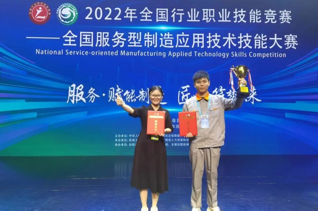 本屆大賽是我國(guó)首次面向服務(wù)型制造運(yùn)用技術(shù)領(lǐng)域舉辦的國(guó)家級(jí)一類職業(yè)技能大賽,也是我院第一次嘗試跨專業(yè)比賽,大賽重點(diǎn)圍繞生產(chǎn)制造主要環(huán)節(jié),分為職工組、學(xué)生組兩個(gè)組別,經(jīng)過(guò)層層選拔,來(lái)自全國(guó)28個(gè)省區(qū)市及機(jī)械行業(yè)、中央企業(yè)共30支代表隊(duì)的560余名選手參加決賽。大賽共分設(shè)五個(gè)賽項(xiàng),分別是計(jì)算機(jī)程序設(shè)計(jì)員(個(gè)性定制與設(shè)計(jì)服務(wù))、數(shù)字化管理師(協(xié)同制造網(wǎng)絡(luò)構(gòu)建)、物聯(lián)網(wǎng)安裝調(diào)試員(數(shù)字中臺(tái)與遠(yuǎn)程運(yùn)維服務(wù))、服務(wù)機(jī)器人應(yīng)用技術(shù)員(機(jī)器人智能服務(wù))、供應(yīng)鏈管理師(產(chǎn)品檢測(cè)與客戶體驗(yàn)服務(wù)),各賽項(xiàng)比賽由理論考試和實(shí)操操作兩部分組成。根據(jù)獎(jiǎng)勵(lì)規(guī)定,各賽項(xiàng)獲得職工組單人賽前5名,雙人賽前3名的選手。經(jīng)過(guò)2天的理論競(jìng)賽和3天的實(shí)操比賽,鄭逾龍同學(xué)頂住壓力,穩(wěn)定發(fā)揮,最終取得全國(guó)一等獎(jiǎng)(第2名)的好成績(jī)。
