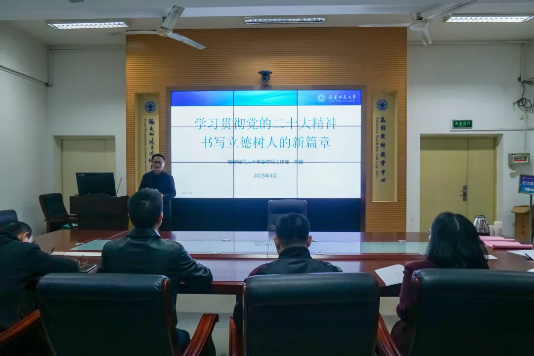 黨的二十大報告指出:全面貫徹黨的教育方針,落實立德樹人的根本任務(wù),培養(yǎng)德智體美勞全面發(fā)展的社會主義建設(shè)者和接班人。為了深入學(xué)習(xí)貫徹黨的二十大精神,進一步推進學(xué)院師德師風(fēng)建設(shè),培養(yǎng)高素質(zhì)教育隊伍,信息與智慧交通學(xué)院特邀福建師范大學(xué)教師工作部部長李鋒開展《學(xué)習(xí)貫徹黨的二十大精神,書寫立德樹人的新篇章》專題宣講會。