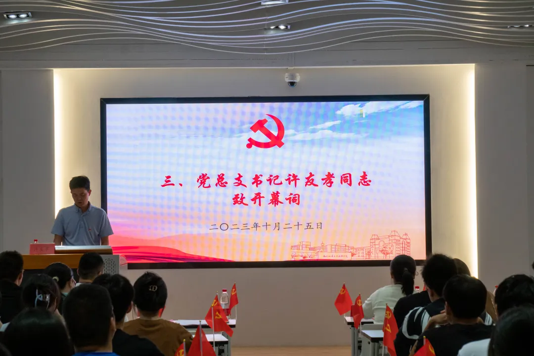 黨總支書記許友孝致開幕詞,他向同學(xué)們提出三點(diǎn)要求:一、認(rèn)真學(xué)習(xí),提升素養(yǎng);二、志存高遠(yuǎn),鑄牢信念;三、主動參與,學(xué)做合一。