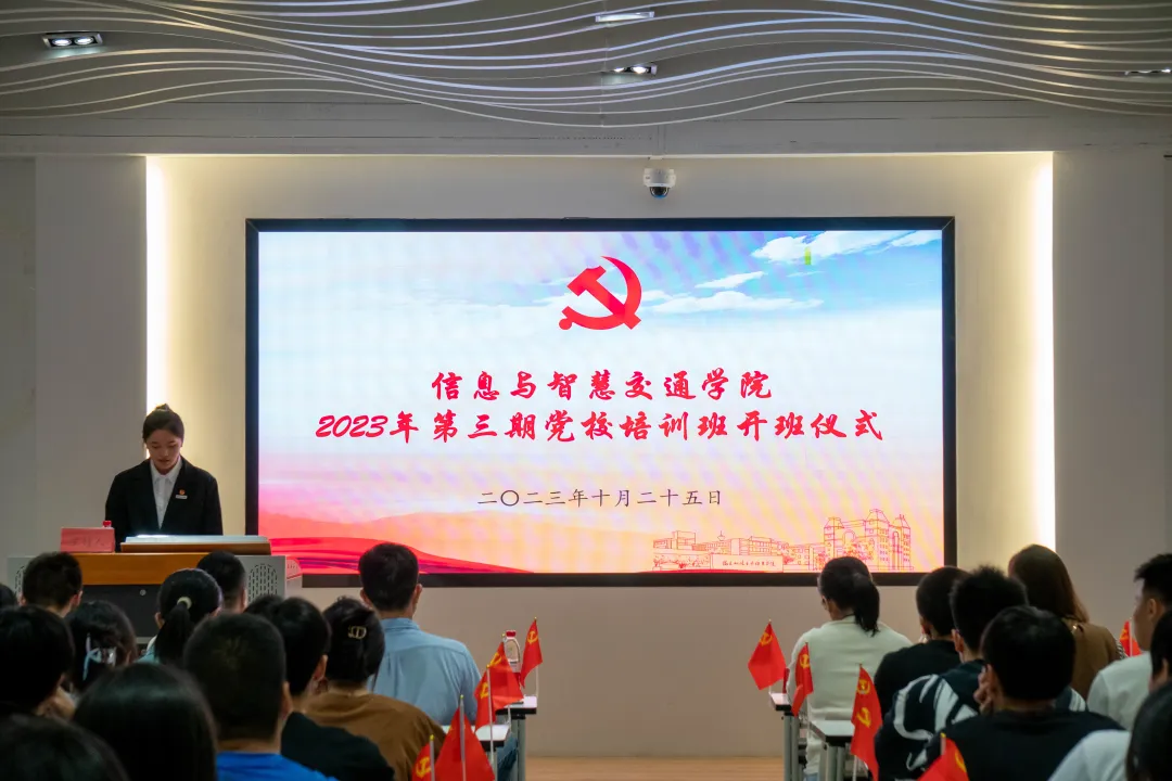 為進(jìn)一步提升入黨積極分子政治素質(zhì)和思想認(rèn)知,教育引導(dǎo)廣大入黨積極分子“聽黨話、感黨恩、跟黨走”,10月25日中午,信息與智慧交通學(xué)院在福道園鑒知樓三樓黨建館舉行2023年第三期黨校培訓(xùn)班開班式暨黨課第一講。學(xué)院黨總支書記許友孝、黨總支副書記柳燕妮、第二支部輔導(dǎo)員出席,22級入黨積極分子與21級擬發(fā)展對象參加本次開班儀式,開班儀式由分團(tuán)委兼職副書記(學(xué)生)陳曉慶主持。