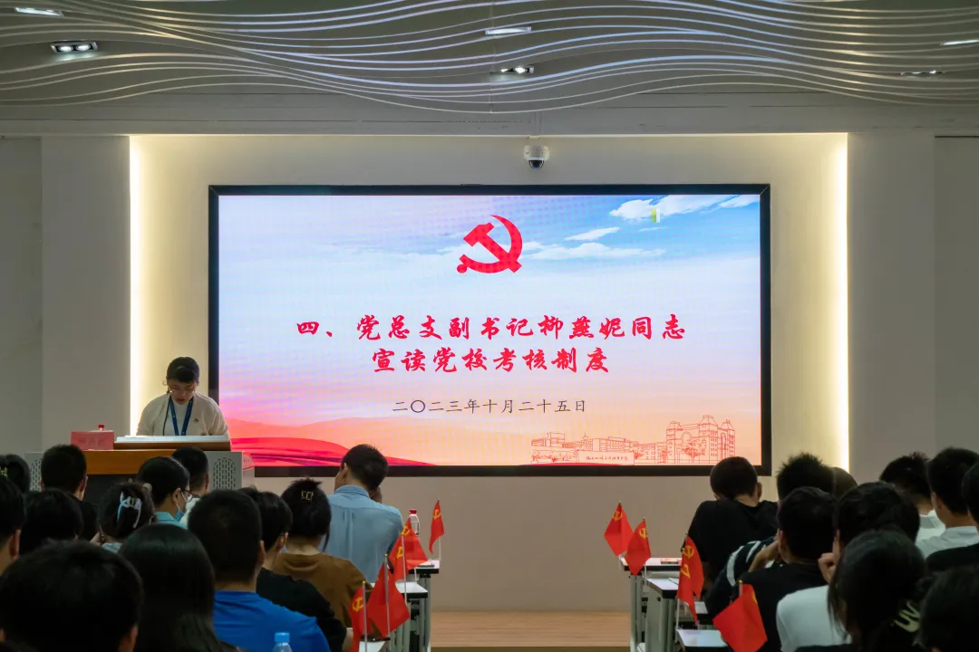 黨總支副書記柳燕妮同志為學(xué)員們宣讀信息與智慧交通學(xué)院2023年第三期黨校學(xué)員考核制度,同時為學(xué)員們指出黨校考核制度的重要性,并表示將會對所有參與黨校學(xué)習(xí)的成員進(jìn)行嚴(yán)格的考核。