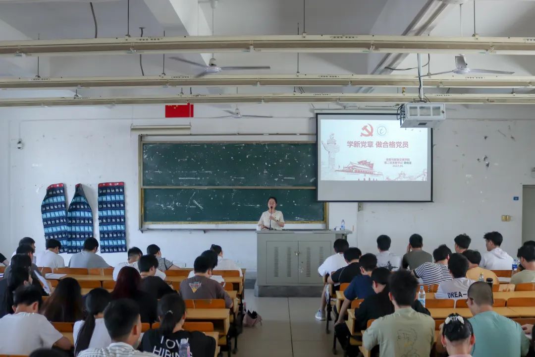 信息與智慧交通學(xué)院第二黨支部書(shū)記潘倩瀅以《學(xué)新黨章 做合格黨員》為主題,圍繞“十九大對(duì)黨章的修改”、“學(xué)習(xí)新黨章 做合格黨員”、“貫徹落實(shí)十九大精神”、“開(kāi)啟新時(shí)代 踏上新征程”四個(gè)方面展開(kāi)。
