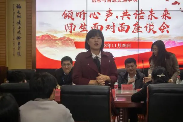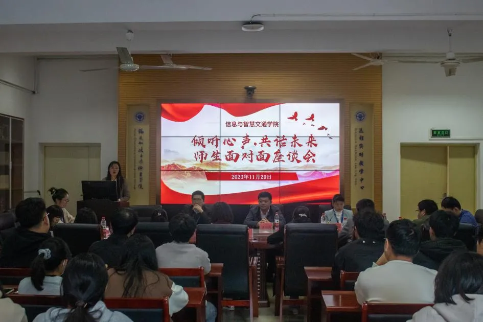 為進(jìn)一步貫徹落實“以學(xué)生為中心”的教育理念,傾聽學(xué)生心聲,回應(yīng)學(xué)生關(guān)切,助力學(xué)生成長,切實構(gòu)建和諧、信任、友愛的師生關(guān)系,信息與智慧交通學(xué)院于11月29日下午在福道園自強(qiáng)樓2-1舉行“傾聽心聲,共話未來”——信息與智慧交通學(xué)院師生面對面座談會,