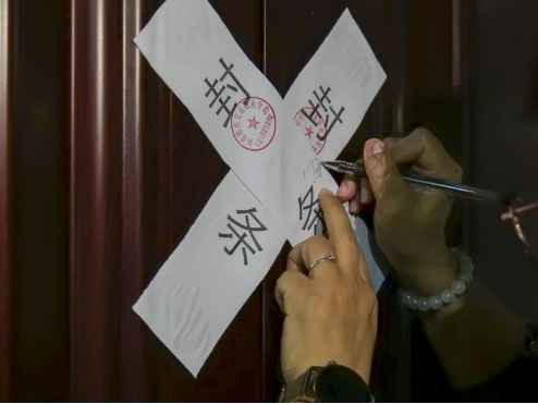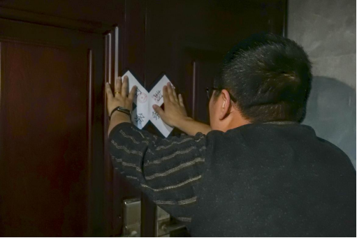 各賽項的裁判們?yōu)楸荣悎龅刭N上封條