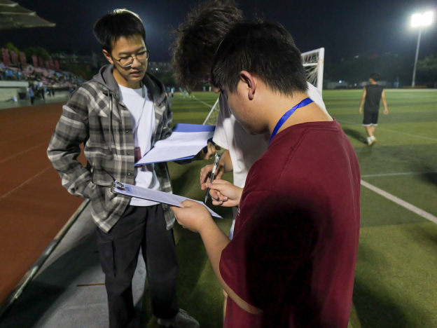 項目比賽開始前,學生志愿者們早早來到場地,進行著緊張而有序的準備工作。他們認真地清掃場地、擺放器材,為運動員們創(chuàng)造一個良好的比賽環(huán)境。