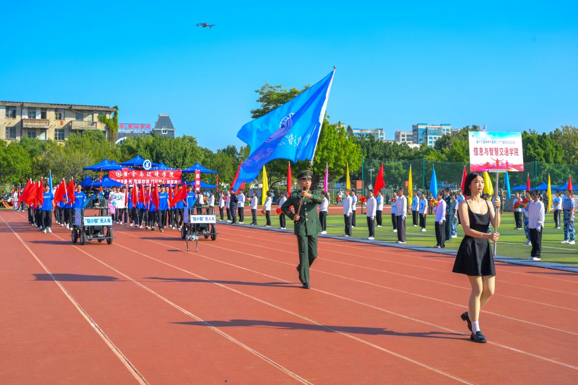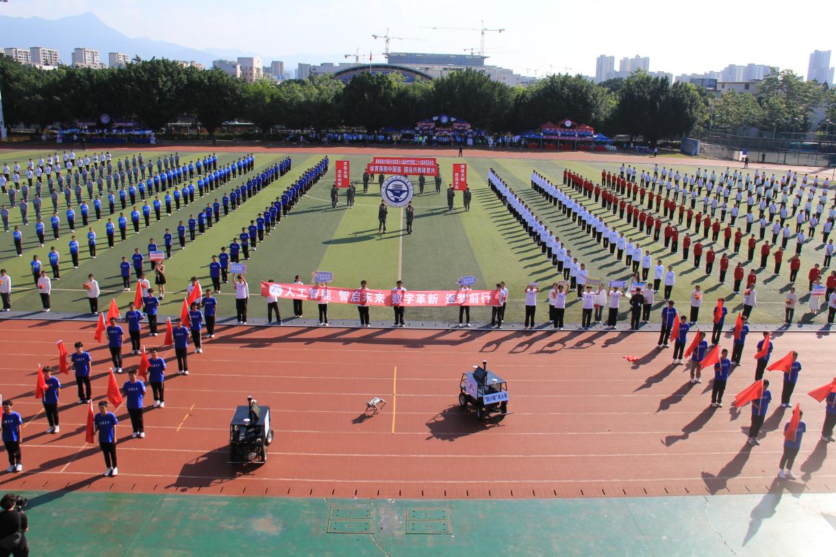 開幕式上,我院學(xué)子滿懷著飽滿的熱情和昂揚(yáng)的斗志,將青春的活力與團(tuán)隊(duì)的風(fēng)采展現(xiàn)得淋漓盡致。揮旗表演整齊劃一,那一面面鮮紅旗幟恰似翻飛的火焰,為開幕式增添了一抹絢麗奪目的色彩。尤為引人矚目的是,一只機(jī)器狗在跑道上靈活自如地穿梭,它時(shí)而輕快跳躍,時(shí)而敏捷翻滾,動(dòng)作流暢自然,仿佛被賦予了鮮活的生命一般。同時(shí),無人車也沿著跑道緩緩駛過,其車身設(shè)計(jì)簡潔大方,線條流暢順滑,處處彰顯著未來感。這一表演不僅凸顯出我院在機(jī)器人技術(shù)領(lǐng)域所取得的卓越成就,更讓現(xiàn)場觀眾深切感受到了科技所蘊(yùn)含的獨(dú)特魅力以及無限可能。