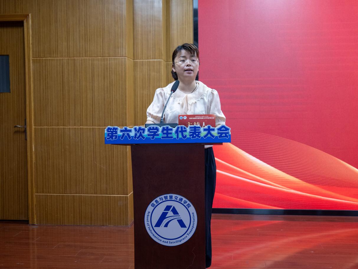 信息與智慧交通學(xué)院分團委副書記沈晨晞老師代表學(xué)院分團委向大會的召開表示熱烈的祝賀。她寄望于全體學(xué)生代表大會代表要始終以習(xí)近平新時代中國特色社會主義思想為指導(dǎo),切實肩負起團結(jié)引領(lǐng)青年學(xué)生緊跟黨的領(lǐng)導(dǎo)的政治責任。要把服務(wù)同學(xué)、促進學(xué)生成長成才作為核心任務(wù),將服務(wù)宗旨貫穿于學(xué)生會工作的全過程。同時,聚焦學(xué)生會深化改革與自身建設(shè),通過從嚴治會、培育清新文化來不斷提升組織效能,推動學(xué)生會規(guī)范化發(fā)展,讓學(xué)生會真正成為黨聯(lián)系青年學(xué)生的堅實橋梁和紐帶。