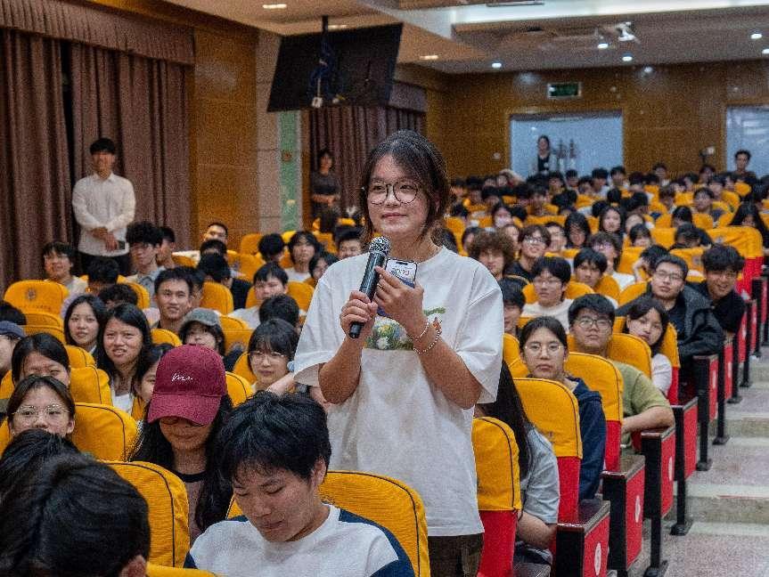 講座結尾設置了氣氛熱烈的互動環(huán)節(jié),陳弘警長精心準備了與電信詐騙相關的核心問題進行現(xiàn)場提問,并給同學們贈予了象征安全守護的警察玩偶作為獎勵。同學們積極舉手,踴躍發(fā)言,展現(xiàn)出對反詐知識的高度關注和良好掌握。
