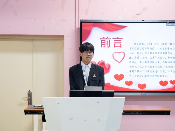 會(huì)上,院團(tuán)委、學(xué)生會(huì)各部門依次上臺(tái)進(jìn)行述職匯報(bào),回顧了本學(xué)期工作成果與不足。各部門以數(shù)據(jù)和案例為支撐,全面總結(jié)了在組織建設(shè)、活動(dòng)開展、服務(wù)同學(xué)等方面的工作成效。同時(shí)也對(duì)工作中存在的問題進(jìn)行了深入反思,形成重點(diǎn)改進(jìn)措施清單,對(duì)未來工作計(jì)劃做出規(guī)劃,提出具體行動(dòng)方案。