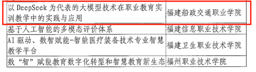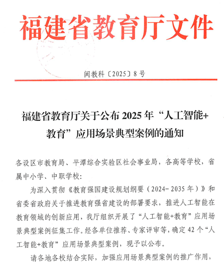 近日,福建省教育廳公布了2025年“人工智能+教育”應(yīng)用場景典型案例名單,我院申報(bào)的“以DeepSeek為代表的大模型技術(shù)在職業(yè)教育實(shí)訓(xùn)教學(xué)中的實(shí)踐與應(yīng)用”成功入選。