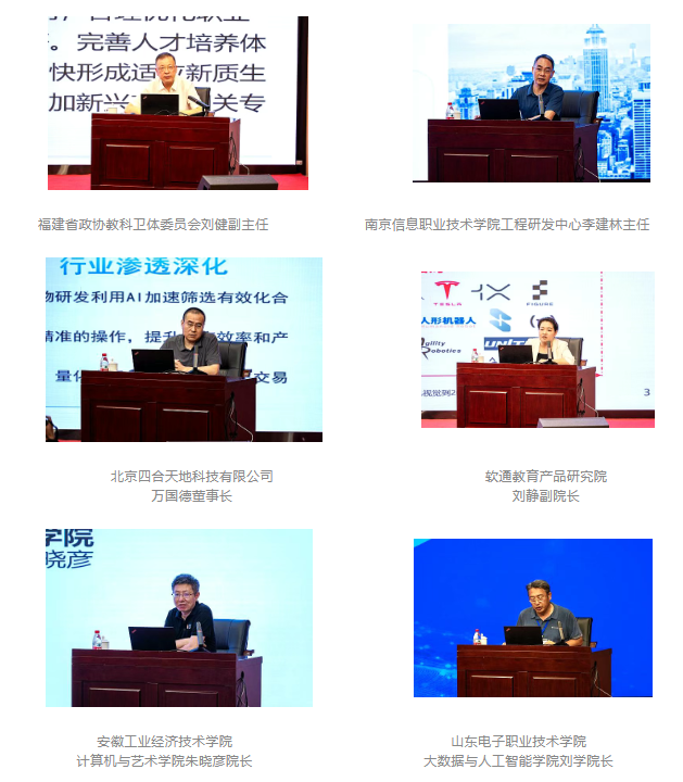 在交流環(huán)節(jié),大會特邀謝俐司長、劉健副主任、北京四合天地科技有限公司萬國德董事長、軟通教育產(chǎn)品研究院劉靜副院長、山東電子職業(yè)技術(shù)學(xué)院大數(shù)據(jù)與人工智能學(xué)院劉學(xué)院長、安徽工業(yè)經(jīng)濟(jì)技術(shù)學(xué)院計(jì)算機(jī)與藝術(shù)學(xué)院朱曉彥院長、南京信息職業(yè)技術(shù)學(xué)院工程研發(fā)中心李建林主任等七位專家作主旨報告,內(nèi)容立足前沿、聚焦實(shí)踐,以深刻的理論洞察與豐富的案例剖析,為人工智能領(lǐng)域職業(yè)教育在新時代的創(chuàng)新發(fā)展指明了方向。