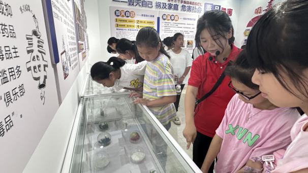 在泰寧縣禁毒教育展廳,踐行團成員化身為“禁毒宣講員”,帶領孩子們近距離觀察仿真毒品樣本,解讀毒情數(shù)據看板。通過玻璃展柜里的“偽裝陷阱”、墻上觸目驚心的案例,將抽象的禁毒知識具象化。當孩子們踮起腳尖辨認“彩色糖果”般的新型毒品時,防毒拒毒的安全意識已實現(xiàn)有效滲透——這是實踐團在“三下鄉(xiāng)”活動中,為鄉(xiāng)土青少年構建安全防護體系的重要實踐縮影。