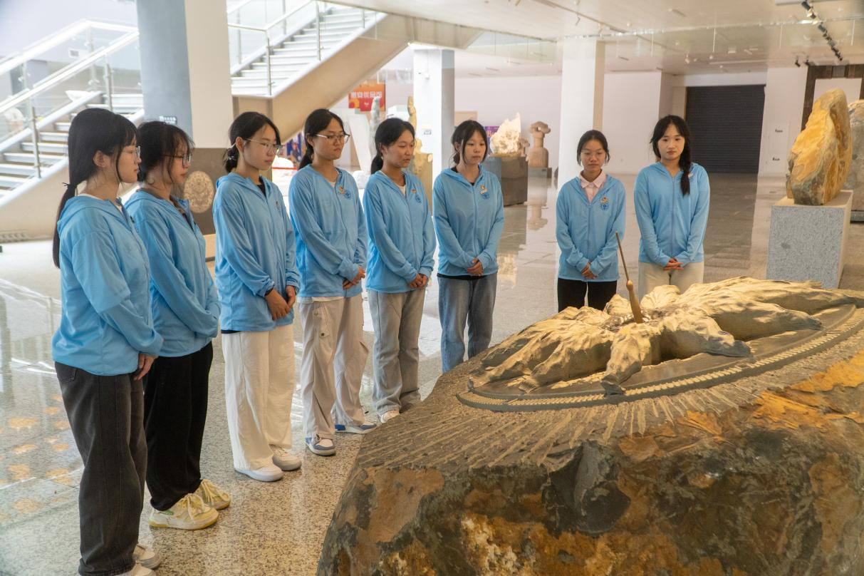 離開工作室,隊(duì)伍前往 “世界石雕之都” 展示中心與雕藝博物館。展示中心以石材為載體,展現(xiàn)山海特色與千年雕藝精髓;博物館內(nèi)千余件展品,串聯(lián)起從傳統(tǒng)影雕到現(xiàn)代抽象石雕的技藝演變歷程。成員們在參觀中,見證傳統(tǒng)紋樣與當(dāng)代設(shè)計的融合,感受古老工具與現(xiàn)代機(jī)械在石雕創(chuàng)作中的協(xié)作,深刻理解文化傳承與創(chuàng)新的內(nèi)在邏輯,認(rèn)識到傳統(tǒng)匠心技藝對鄉(xiāng)村文化振興的重要意義。