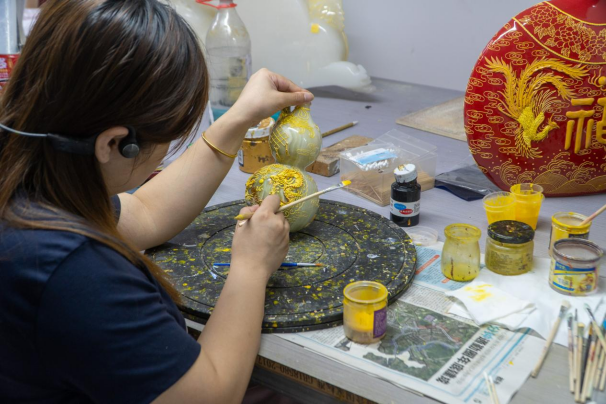 三下鄉(xiāng)隊(duì)伍駐足漆線雕傳承工作室,推開工作室的門,便置身于大漆與歲月交織的藝術(shù)空間。漆線雕作為閩南傳統(tǒng)工藝,將天然大漆與陳年磚粉經(jīng)反復(fù)舂搗調(diào)和,制成柔韌的 “漆線土”。匠人憑借嫻熟技法,在素白瓷坯上盤繞出纏枝蓮紋、祥云朵朵等立體紋樣,再施以金箔、彩料裝飾,最終呈現(xiàn)出精美的漆線雕作品。其色彩與紋樣承載著閩南地區(qū)的民俗信仰與生活風(fēng)情,是地域文化的生動寫照。成員們親手嘗試盤制簡單圖案,通過指尖觸感,切實(shí)體會到這門千年技藝的深厚底蘊(yùn)與獨(dú)特魅力。