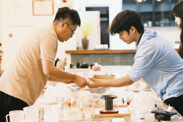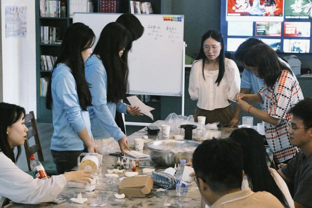短暫互動(dòng)后,踐行團(tuán)成員協(xié)助臺(tái)灣大學(xué)生完成非遺漆扇制作。活動(dòng)中,掌握漆藝技巧的踐行團(tuán)成員從扇面構(gòu)圖到漆料運(yùn)用,手把手指導(dǎo)臺(tái)灣同伴完成調(diào)色、繪制等工序。雙方在創(chuàng)作過(guò)程中交流兩岸漆藝發(fā)展情況,互鑒創(chuàng)作靈感,原本素白的扇面逐漸呈現(xiàn)出獨(dú)具特色的紋樣。這些由兩岸青年共同完成的漆扇作品,既承載著傳統(tǒng)工藝的匠心,又融入了青春友情的溫度。此次活動(dòng)通過(guò)非遺手作這一生動(dòng)形式,讓兩岸青年在協(xié)作中深化文化認(rèn)同,為基層社會(huì)服務(wù)增添了動(dòng)人的文化色彩。