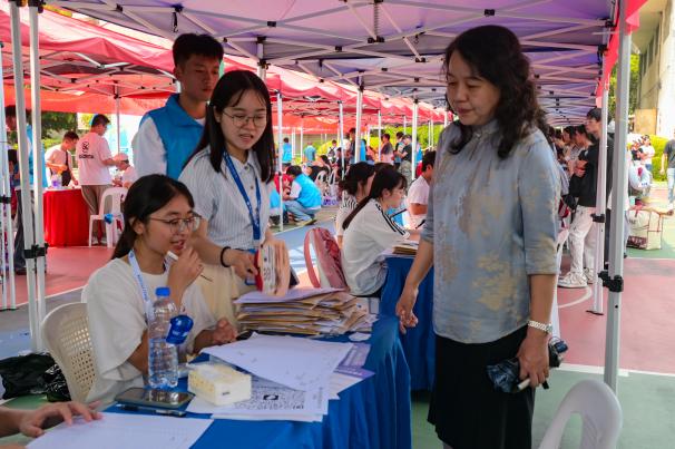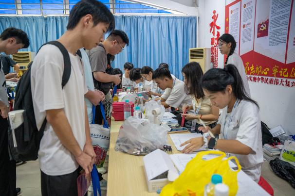 現(xiàn)場百余名校院兩級志愿者身著統(tǒng)一服裝,協(xié)助新生完成身份核驗、宿舍引導(dǎo)等服務(wù),耐心解答新生關(guān)于學(xué)業(yè)規(guī)劃、生活服務(wù)等方面的疑問。