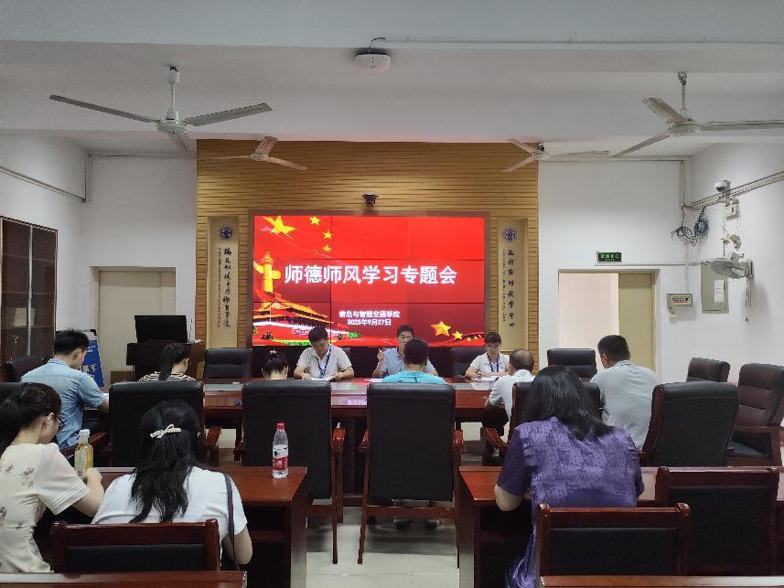9月27日下午,信息與智慧交通學(xué)院開展了師德師風(fēng)建設(shè)工作專題會,學(xué)習(xí)了《習(xí)近平致信全國優(yōu)秀教師代表 向全國廣大教師和教育工作者致以節(jié)日問候和誠摯祝?!?、《教育部公開曝光第十三批7起違反教師職業(yè)行為十項(xiàng)準(zhǔn)則典型案例》。會議由信息與智慧交通學(xué)院黨總支書記許友孝主持。