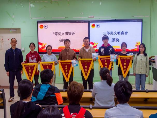 為進一步推進文明校園、和諧校園、平安校園創(chuàng)建,切實推動“溫暖集體”建設(shè)工作落實落細,全面提高學(xué)生的自我管理能力和綜合素質(zhì)水平,11月13日,信息與智慧交通學(xué)院在福道園自強樓1-4教室舉辦2025-2026學(xué)年第一次文明宿舍暨溫暖集體頒獎儀式。出席本次活動的有信息與智慧交通學(xué)院黨總支副書記柳燕妮,輔導(dǎo)員代表,獲獎宿舍學(xué)生和新生班級代表等?;顒佑尚畔⑴c智慧交通學(xué)院自律會紀保部負責同學(xué)主持。