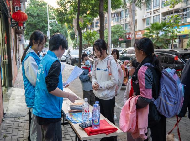 為強(qiáng)化社區(qū)居民與學(xué)生的交通安全意識,普及道路通行、應(yīng)急避險常識,傳遞安全出行理念,筑牢安全防線,營造文明守規(guī)的交通環(huán)境。信息與智慧交通學(xué)院于12月1日在菖蒲社區(qū)開展了“e芯人”服務(wù)隊全國交通安全日宣講活動。
