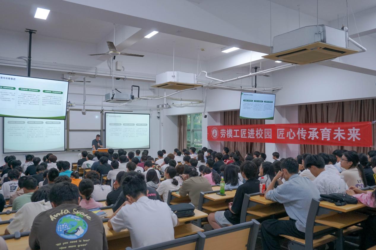 為響應(yīng)2025年全國(guó)職業(yè)教育活動(dòng)周“一技在手 一生無(wú)憂”的號(hào)召,弘揚(yáng)勞模精神與工匠文化,校友會(huì)土木工程專(zhuān)業(yè)委員會(huì)積極搭建校友與母校聯(lián)動(dòng)平臺(tái),近日特邀2006屆道路與橋梁工程技術(shù)專(zhuān)業(yè)優(yōu)秀校友、福建省勞動(dòng)模范、寧德交投置業(yè)公司成本合約部經(jīng)理賴(lài)盛君返校,在創(chuàng)新樓102教室開(kāi)展“勞模工匠進(jìn)校園,匠心傳承育未來(lái)”主題講座。本次活動(dòng)作為職教周特色活動(dòng)之一,吸引了140余名師生參與,現(xiàn)場(chǎng)反響熱烈。